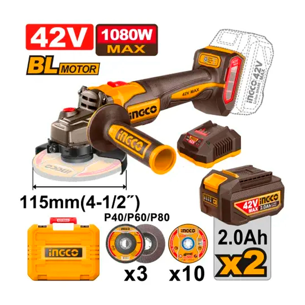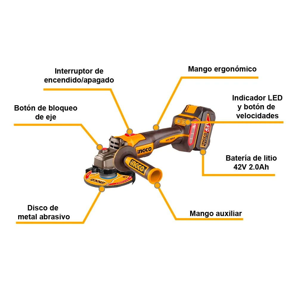 Amoladora Ingco 42V 4 1/2″ + Accesorios CAGLI4108112