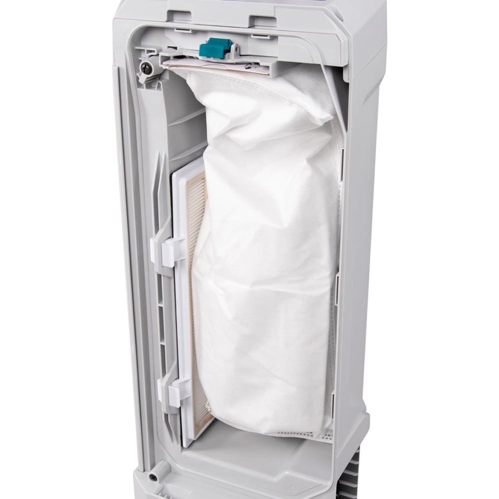 Aspirador vertical con cepillo giratorio en la boquilla que limpia eficazmente las alfombras.