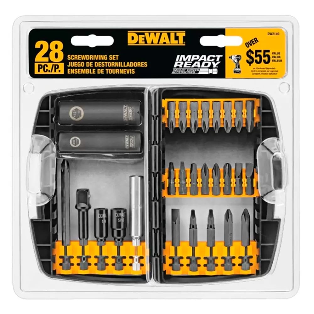El set Dewalt está compuesto por puntas de alta calidad y vasos de impacto. Preparado para hacer frente a todo tipo de trabajos de atornillado, sea cual sea el tipo de conexión y tamaño de la cabeza del tornillo.