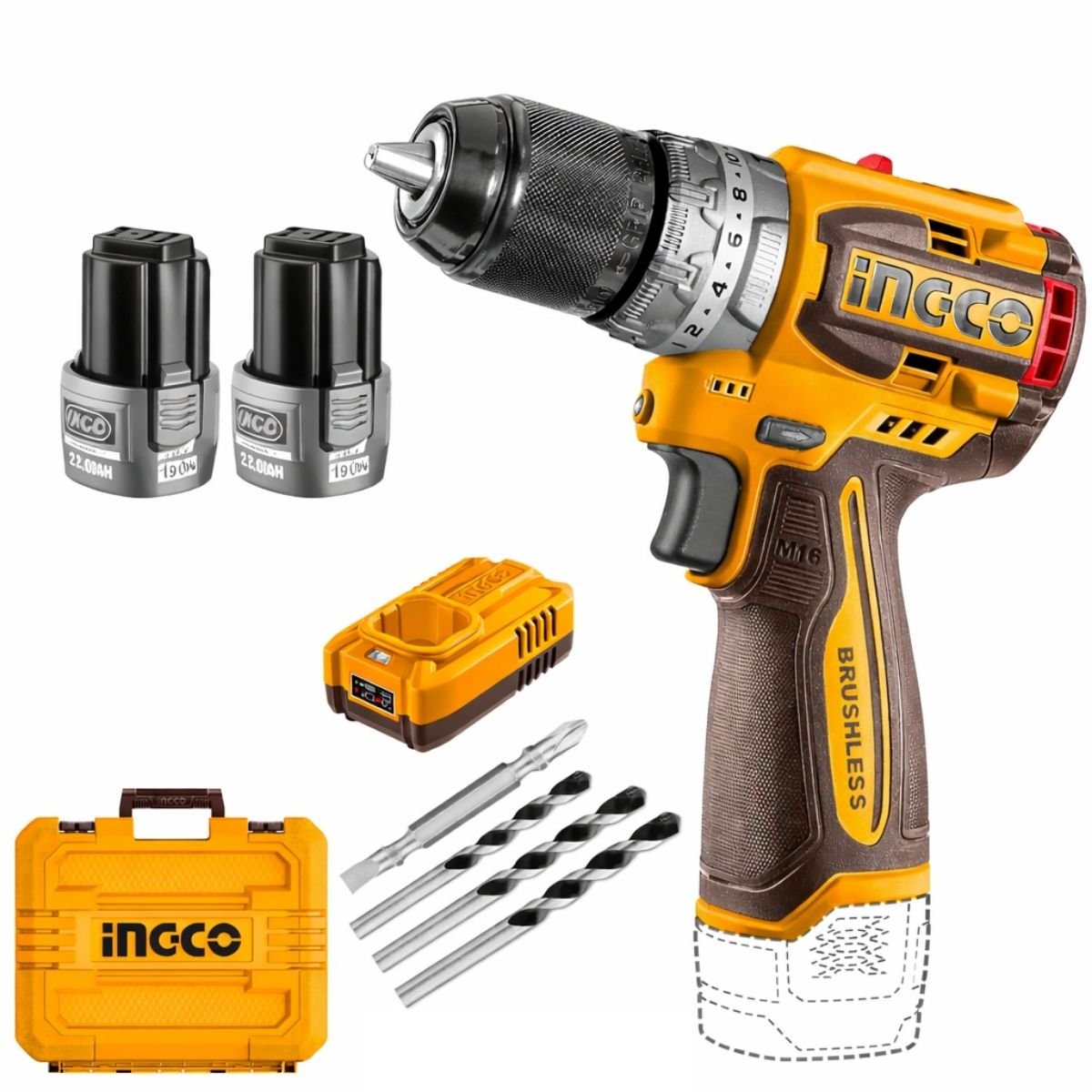 Atornillador percutor inalámbrico INGCO de 16V diseñado para trabajos de perforación y atornillado con alto rendimiento. Su motor sin escobillas brinda mayor eficiencia, durabilidad y control, siendo ideal tanto para uso profesional como doméstico.