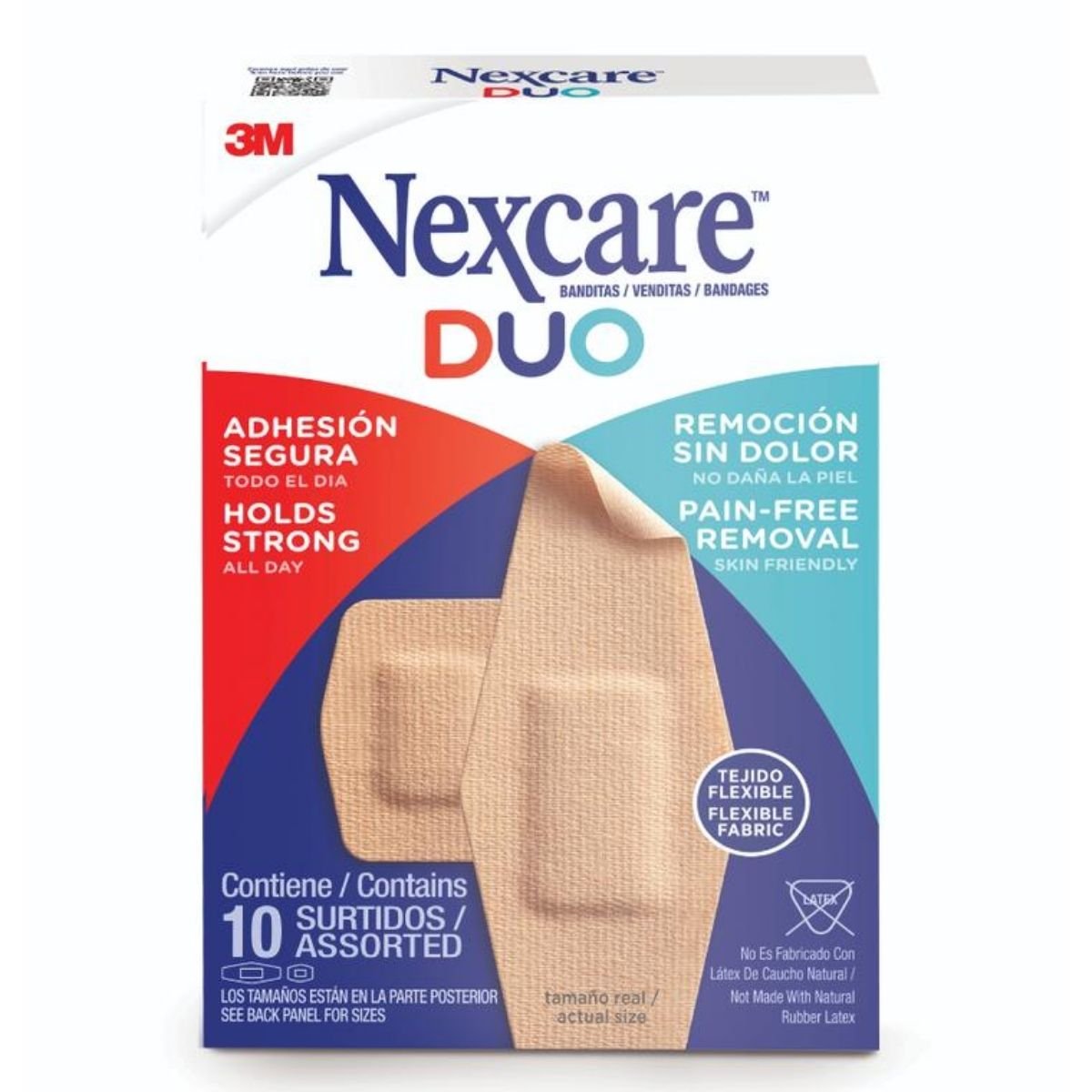 Las Banditas Nexcare Duo están diseñadas para proteger pequeñas heridas, raspones y ampollas durante todo el día, ofreciendo resistencia y comodidad con remoción sin dolor. Incorporan un adhesivo de silicona patentado que permite una fijación segura de hasta 24 horas, pero facilita su retiro sin dejar residuos ni dañar la piel.