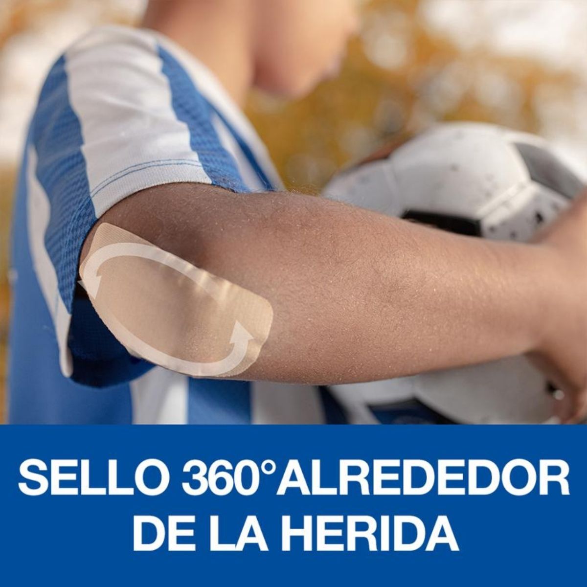 Su tela flexible y duradera se adapta al movimiento natural del cuerpo, estirándose y doblándose contigo, mientras que la almohadilla antiadherente protege la herida sin pegarse. El sellado de 360° alrededor de la almohadilla brinda protección completa, ayudando a mantener la zona cubierta y protegida.