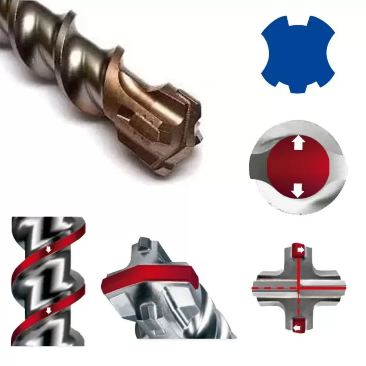 El diseño de la cabeza de la broca le proporciona una gran dureza, lo que facilita un agresivo efecto de demolición y una alta velocidad de taladrado