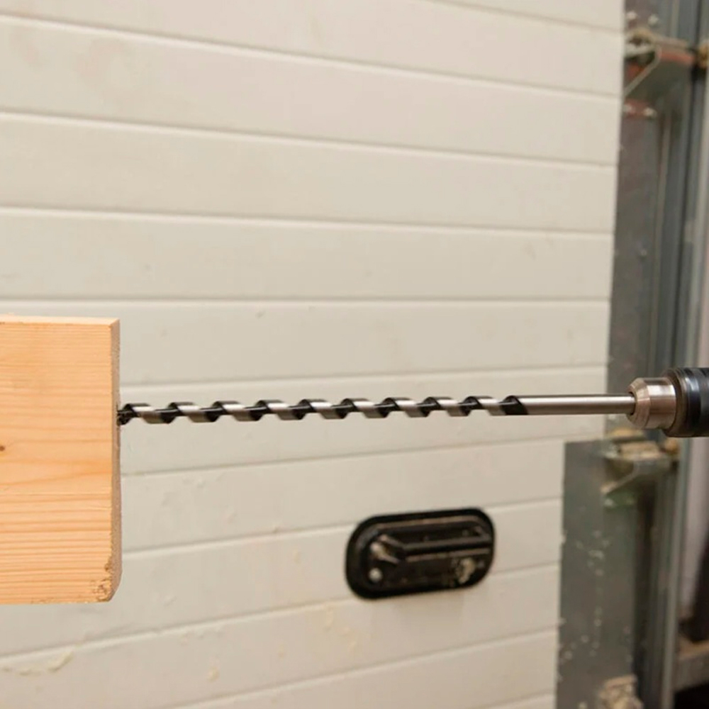 Está diseñada especialmente para profesionales, instaladores, carpinteros y quienes requieren eficiencia y precisión en trabajos de perforación profunda o pasada de materiales en madera.