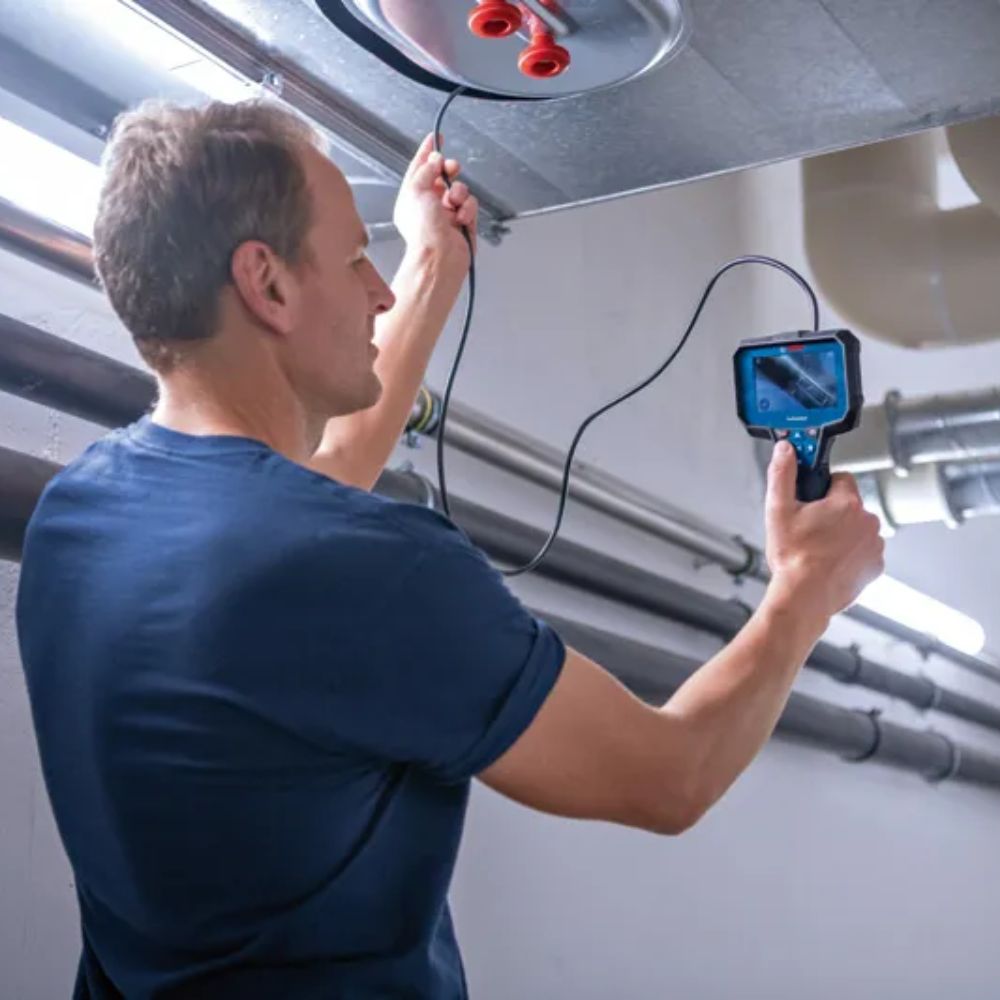 La cámara de inspección GIC 12V-4-23 C Professional es la herramienta ideal para instaladores de climatización y fontaneros, mecánicos de automóvil o electricistas. Tiene una gran pantalla de 4,3” que permite visualizar imágenes claras de 800 x 480 píxeles en alta definición para analizar de forma rápida e intuitiva tuberías, conductos y otras zonas de difícil acceso. La orientación de la imagen se puede determinar fácilmente gracias a una práctica función que mantiene siempre la indicación hacia arriba. Esta cámara ergonómica cuenta con un diseño robusto para poder utilizarla en entornos de trabajo duros y espacios de difícil acceso. Cuenta con calificación IP67 para el cabezal de la cámara que protege frente al polvo y cortos periodos de inmersión en agua, y protección IP54 frente a polvo y salpicaduras de agua para la herramienta.