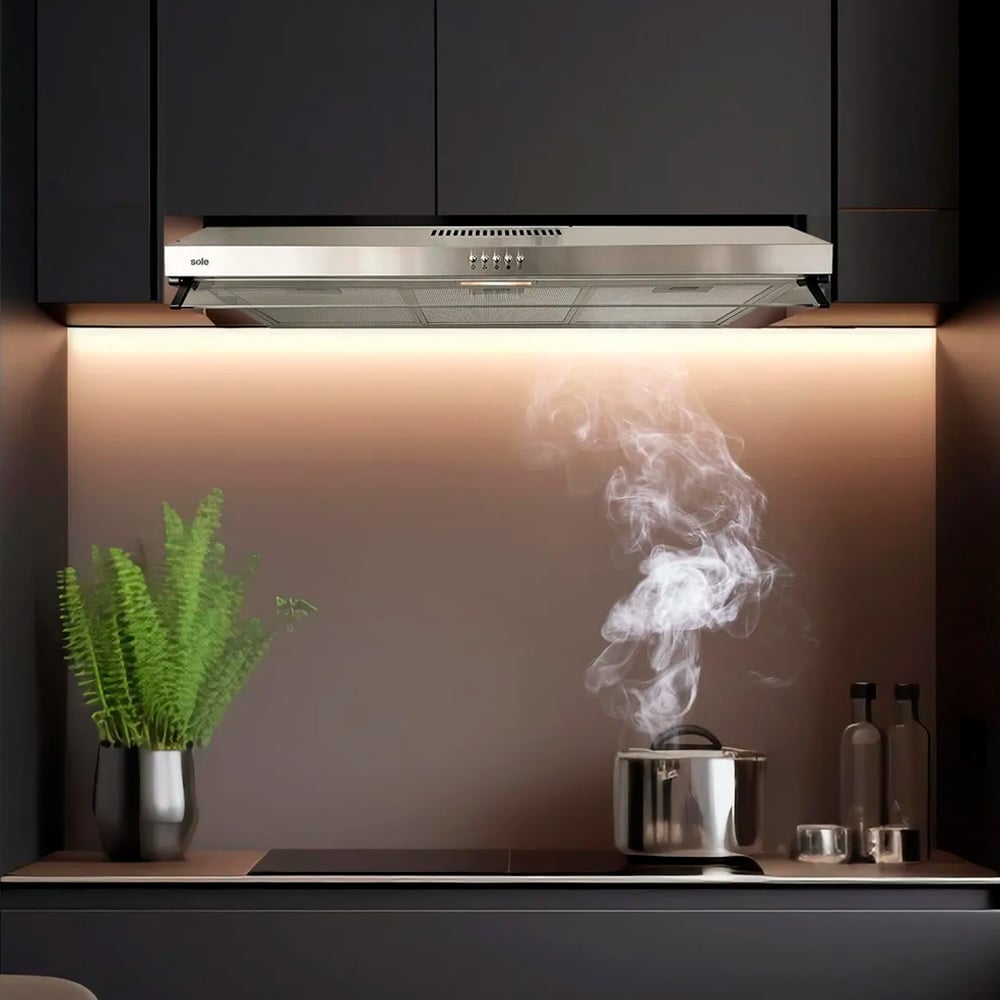 Campana extractora diseñada para la eficiente eliminación de humos, vapores y olores en la cocina.