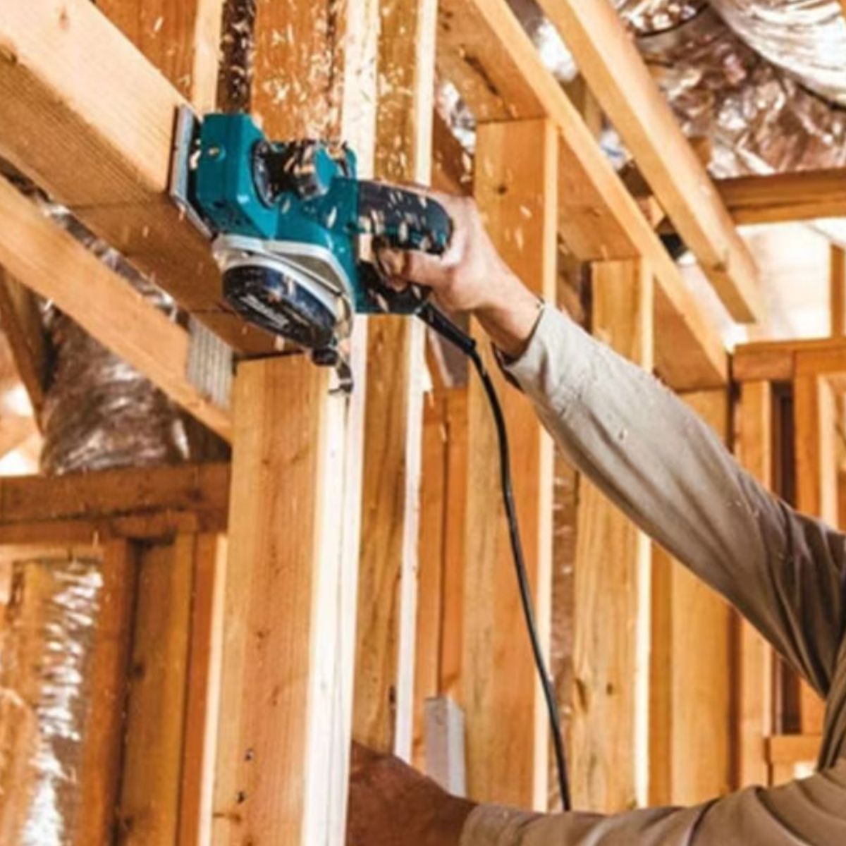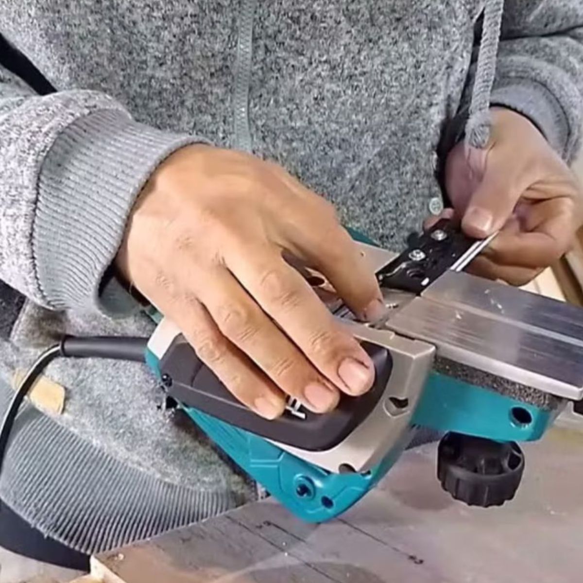 Herramienta robusta de calidad industrial, recomendada para carpintería, especialmente para hacer desbastes, rebajes y biselados, contiene base de aluminio resistente, cubierta lateral de aluminio, sistema de correas de enfriamiento automático, incluye 2 hoja de cepillo, 1 correa, 1 guía paralela y 1 guía de profundidad.