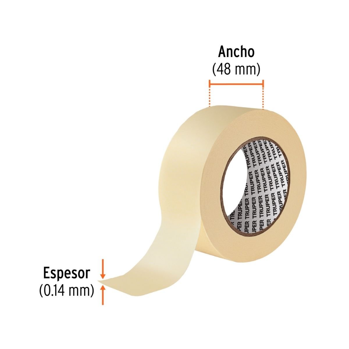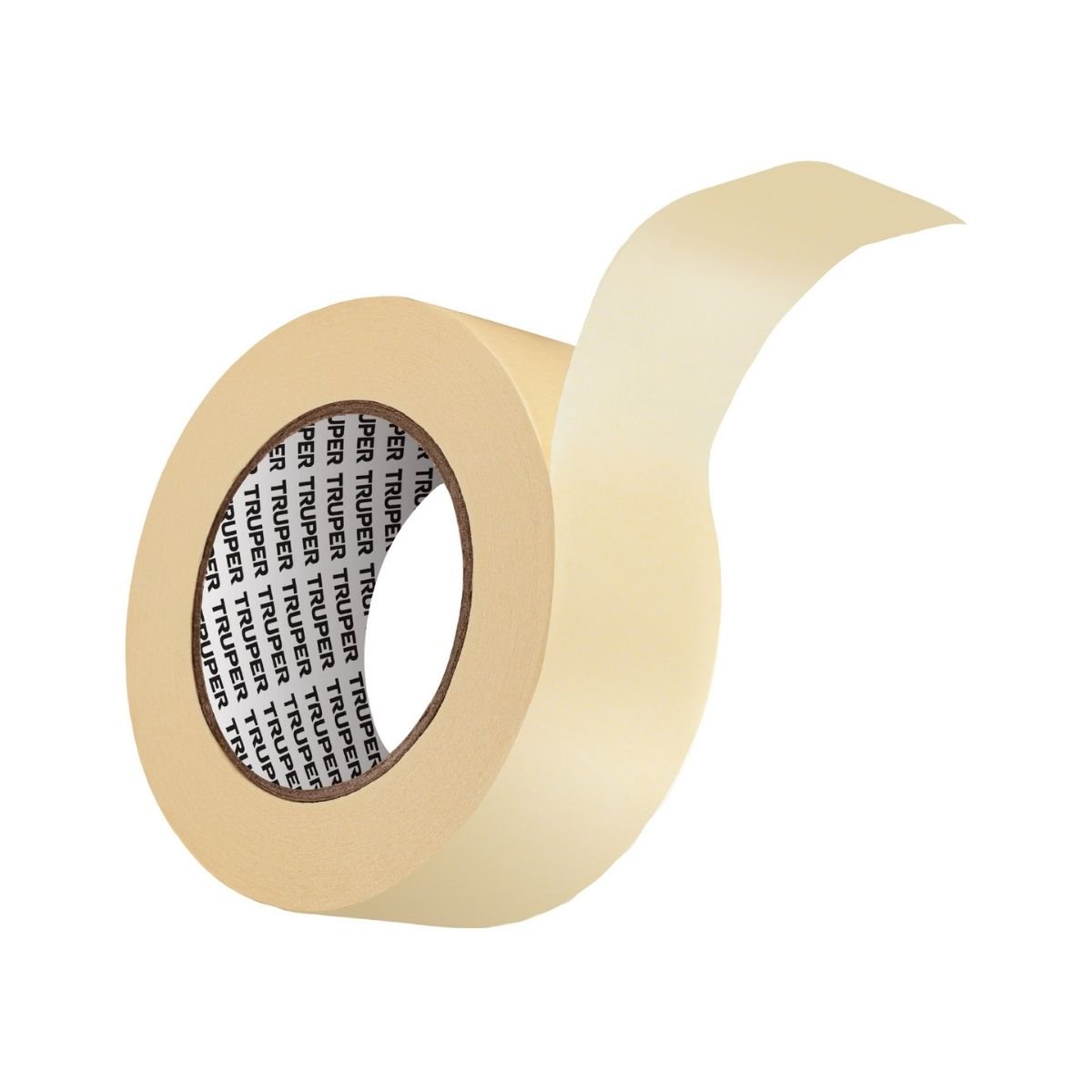 Cinta masking tape Truper de alta adherencia, ideal para cubrir superficies amplias en trabajos de pintura, protección y sujeción temporal. Su adhesivo de caucho natural y respaldo de papel crepé garantizan una fijación firme tanto en superficies lisas como rugosas.