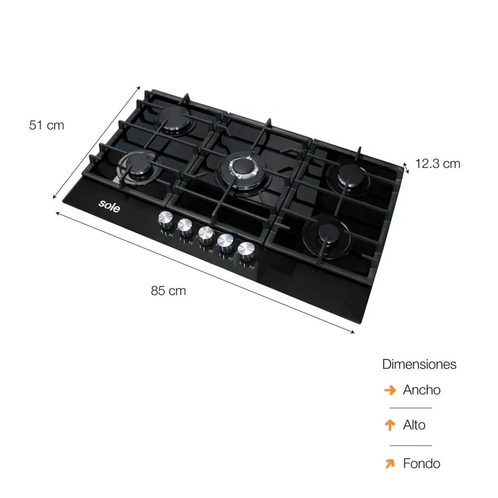 Cocina Empotrable GN Vidrio 90 cm Sole SOLCO046GN