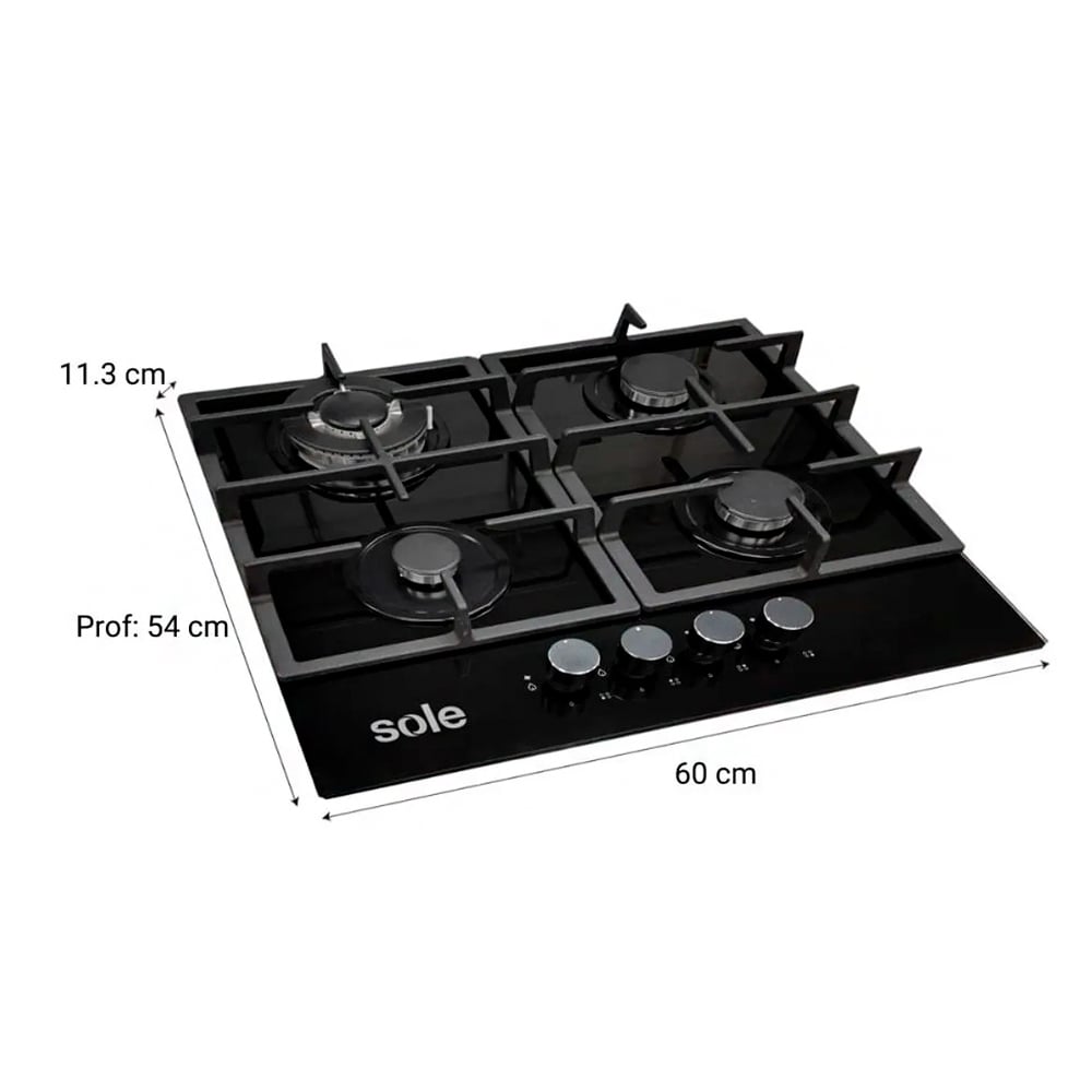 Cocina Encimera Sole Vidrio Templado 60 cm 4 Hornillas SOLCO045