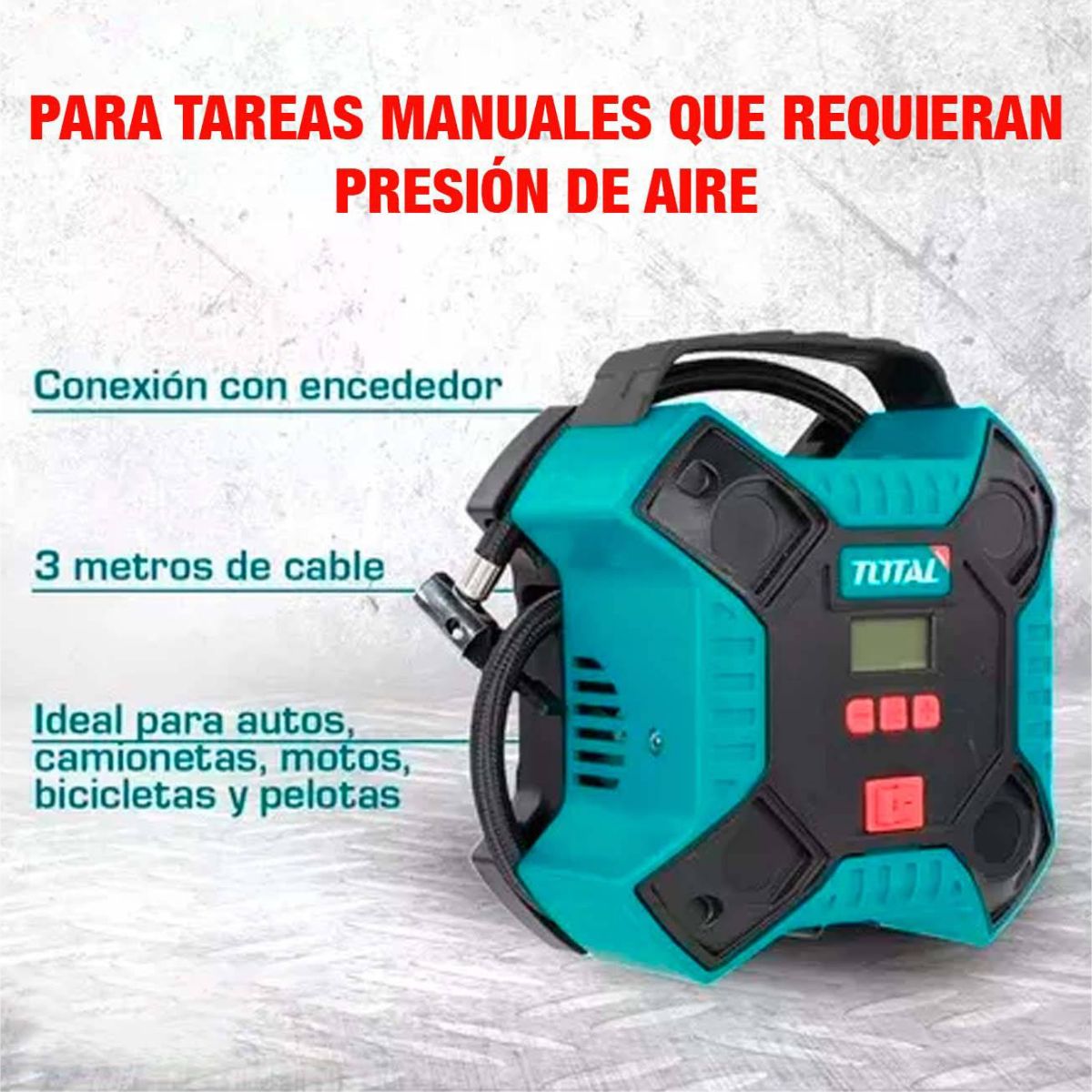 Comprensor Inflador de Aire 12V Auto Moto Total TTAC1601