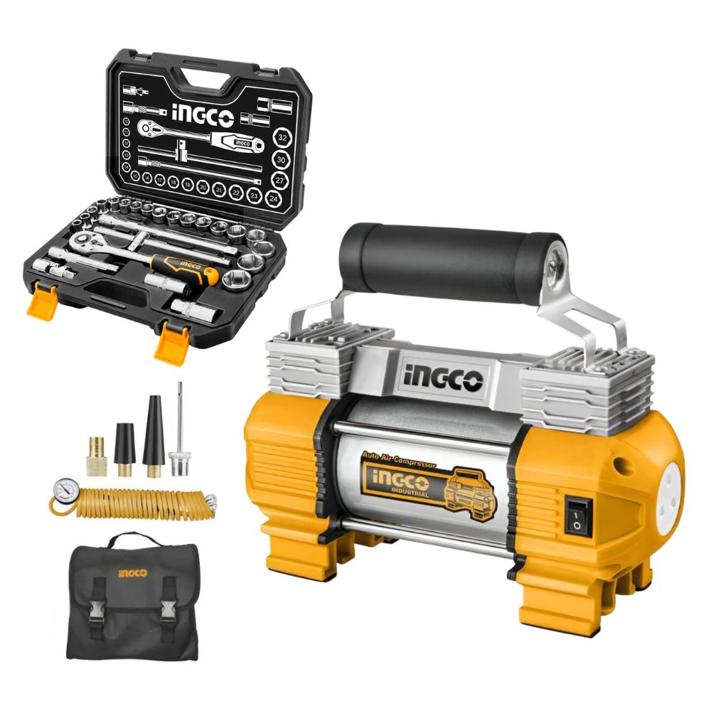 Compresor de aire 12V + Set De Dados 25Pz HKTS12251 INGCO