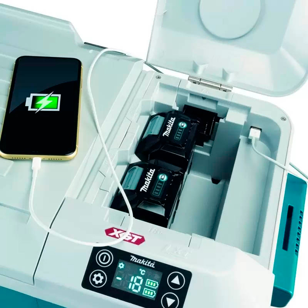 Tiempo de funcionamiento prolongado; 17 / 5 horas en enfriamiento a 5 / -18 ° C. 4 horas en modo calentamiento a 60 ° C con dos baterías BL1860B.