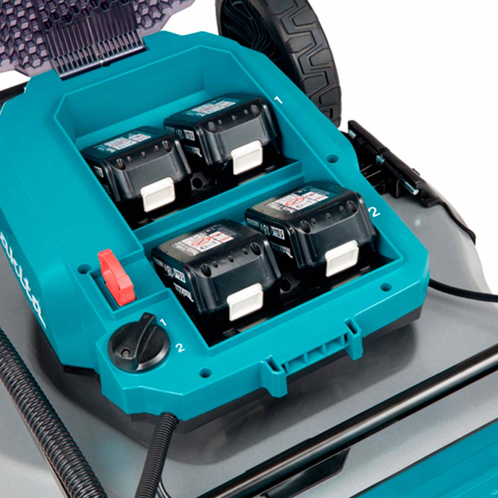 Se pueden instalar cuatro baterías de iones de litio LXT de 18 V en la máquina con un interruptor de selección de batería manual para seleccionar qué par de baterías usar