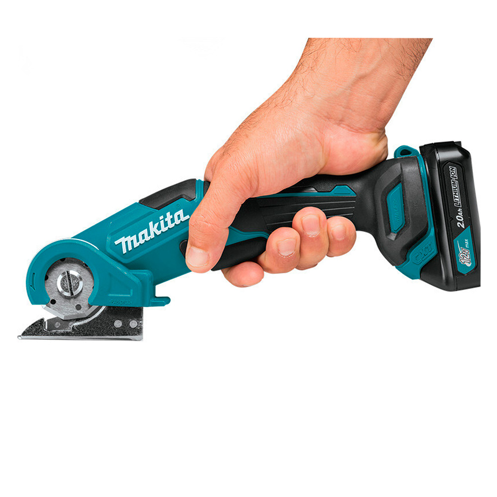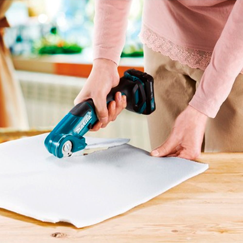 Cortador múltiple Makita 12V para los siguientes materiales: Alfombra, Cartulina, Alfombra, Telas, Cuero, Malla de alambre fino, Discos compactos.