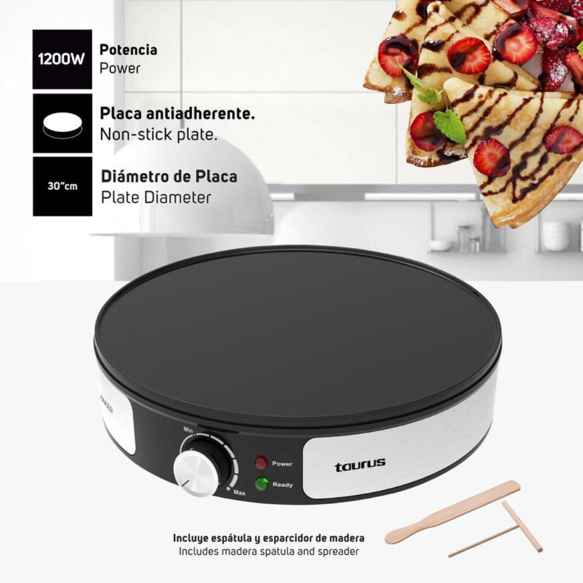 – Cocción uniforme: Distribución homogénea del calor para crepas perfectas.