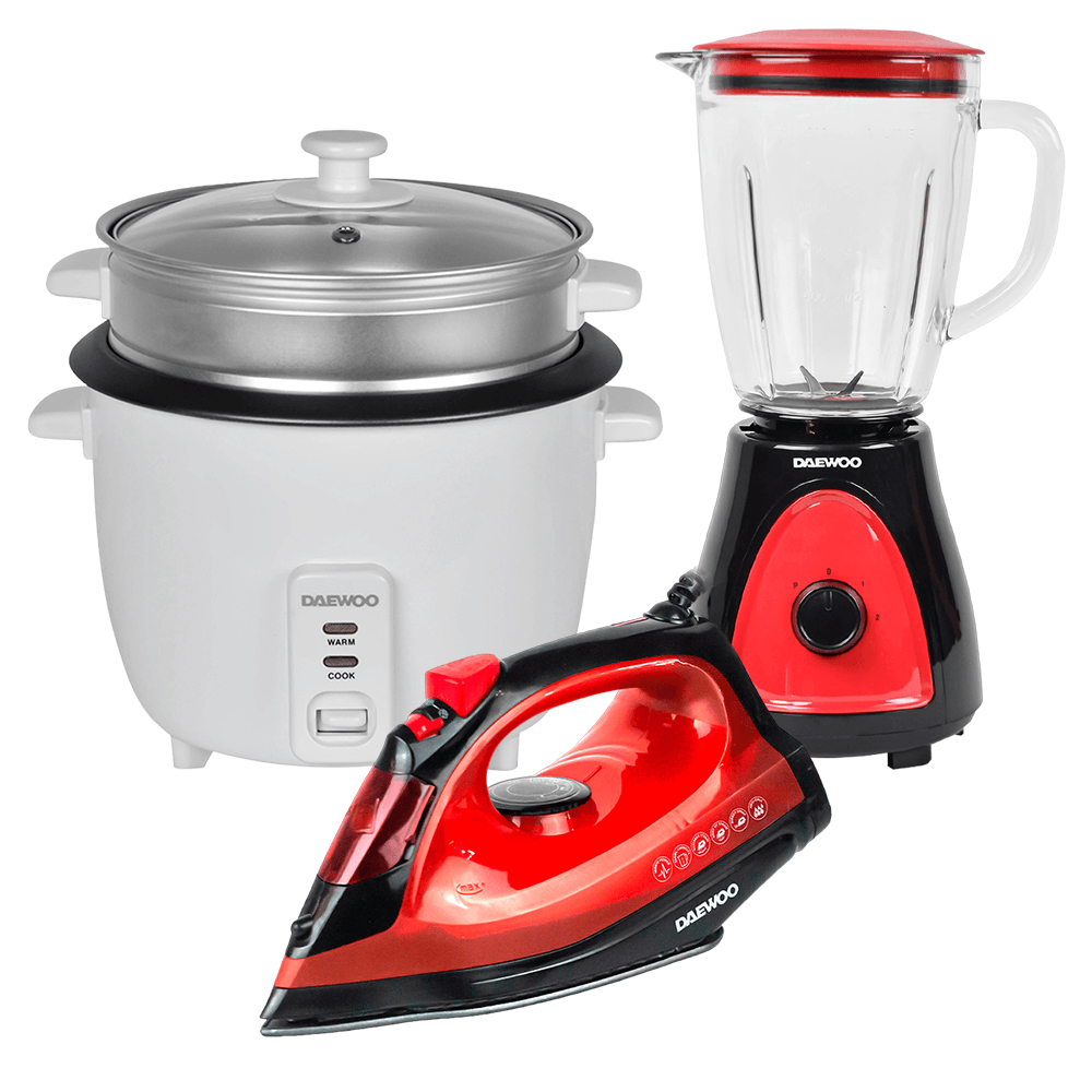 Daewoo Olla Arrocera 1.5L+Licuadora 1.5L+Plancha de Vapor