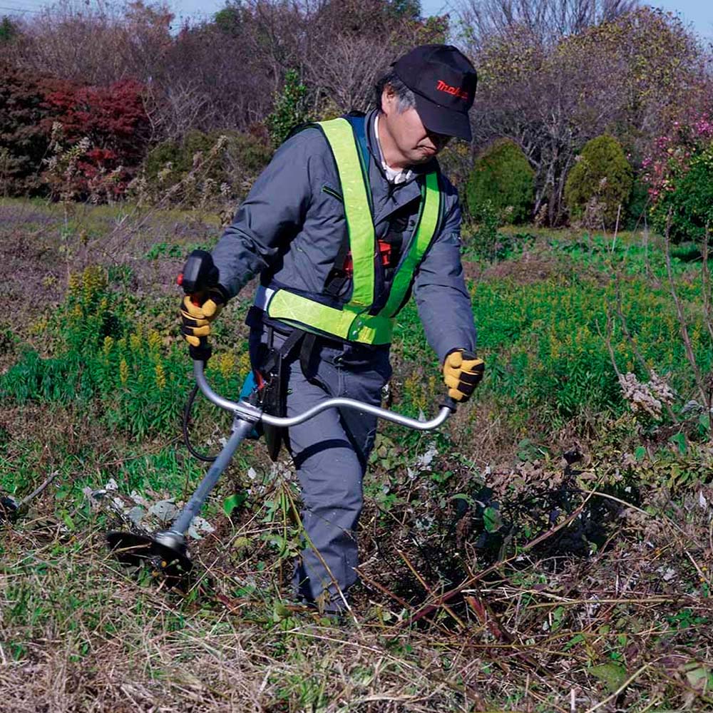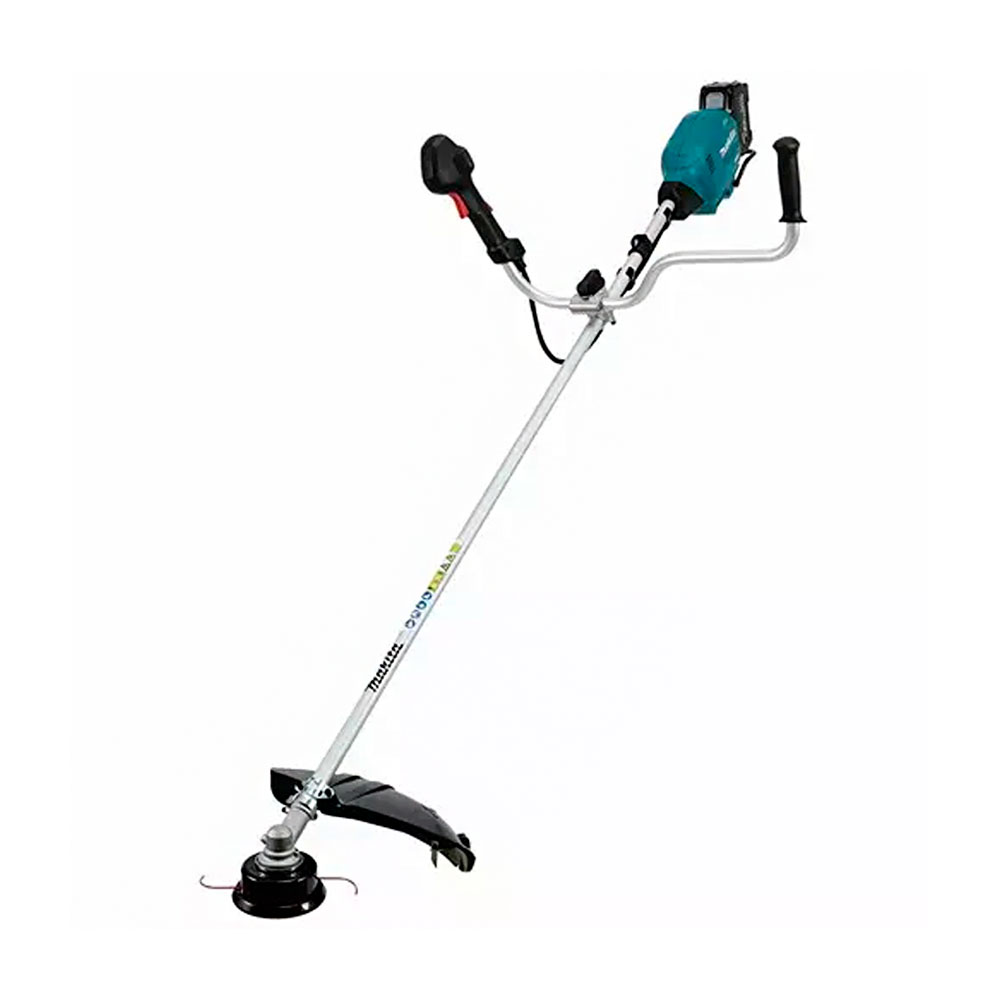 Desbrozadora inalámbrica con manillar tipo U, diseñada para trabajos de corte de maleza y vegetación densa.