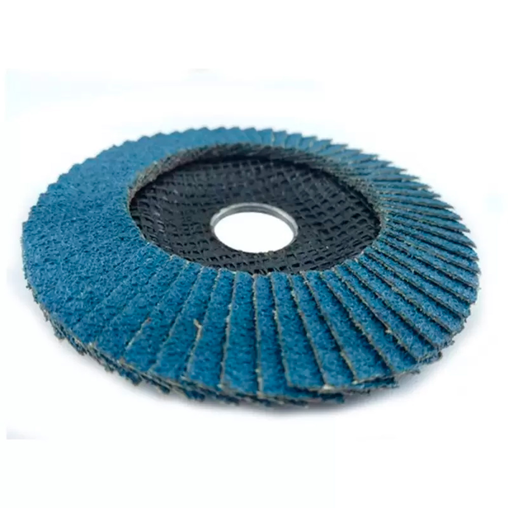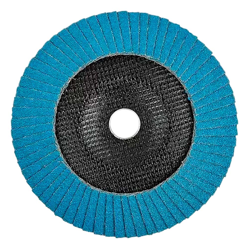 Disco flap con soporte de fibra de vidrio para uso con esmeriladora angular de 7 pulgadas.