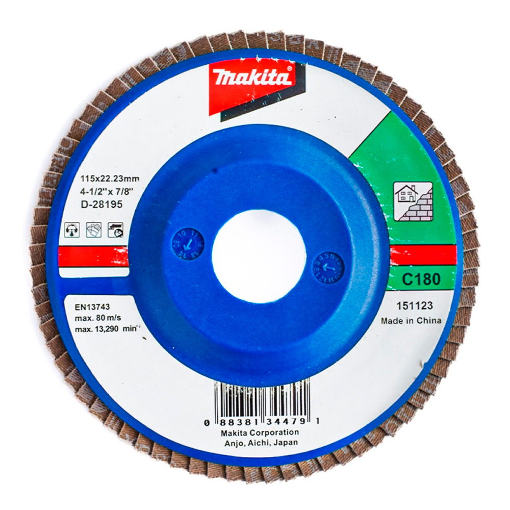 Disco Flap Plano Makita P/Mamposteria 4.5″ Gr.180 D-28195