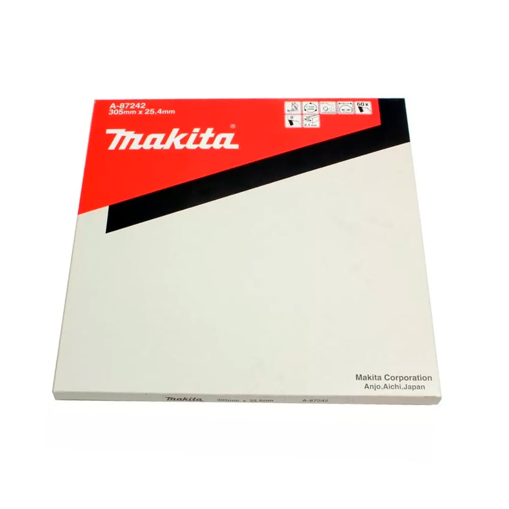 La Hoja de 12″ con Puntas de Carburo para Cortar Metal 60T de Makita es estupenda para hacer cortes en tubería, hierro angular, canaletas y entubados.