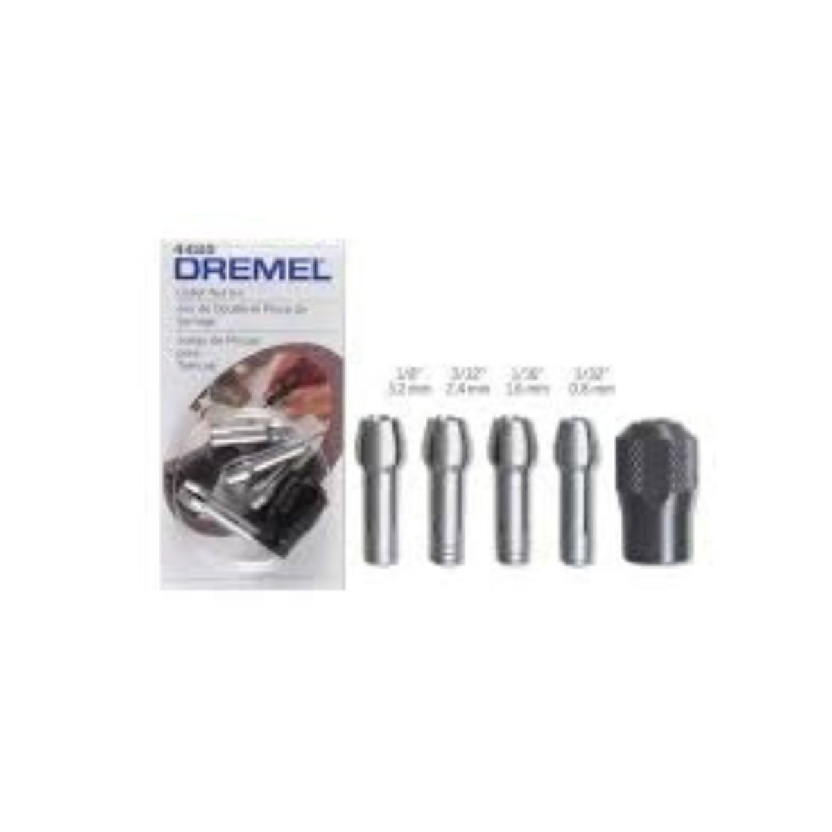 Con las boquillas 480, 481, 482 y 483, más una tuerca de boquilla para cambio rápido, usted puede usar fácilmente una amplia variedad de brocas. Juego de cinco piezas.