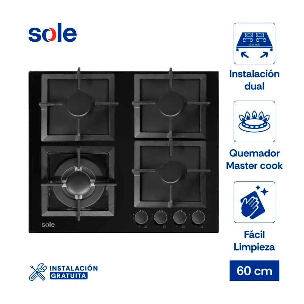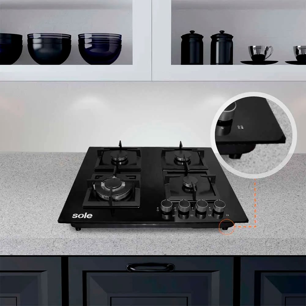 Encimera a Gas Sole Vidrio Templado 60 cm – Modelo SOLCO070