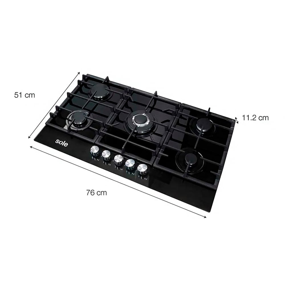 Encimera Vidrio Templado Sole A Gas 77cm SOLCO058V2