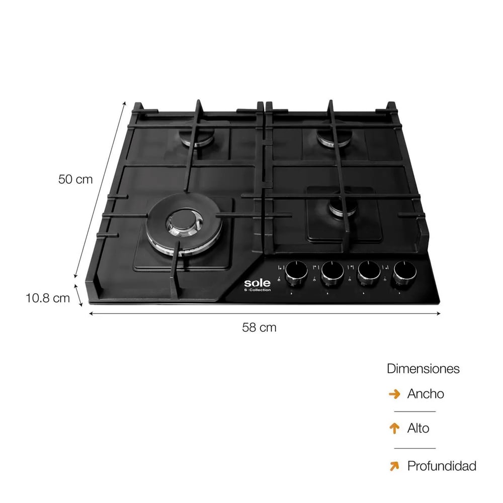 Encimera Vidrio Templado Sole S-Collection Gas 58 cm SOLCO066