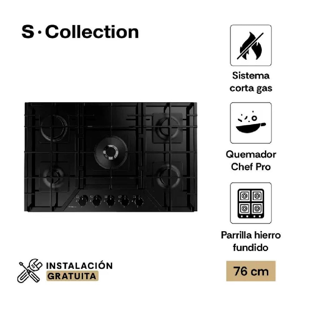 Encimera Vidrio Templado Sole S-Collection Gas 76 cm SOLCO060