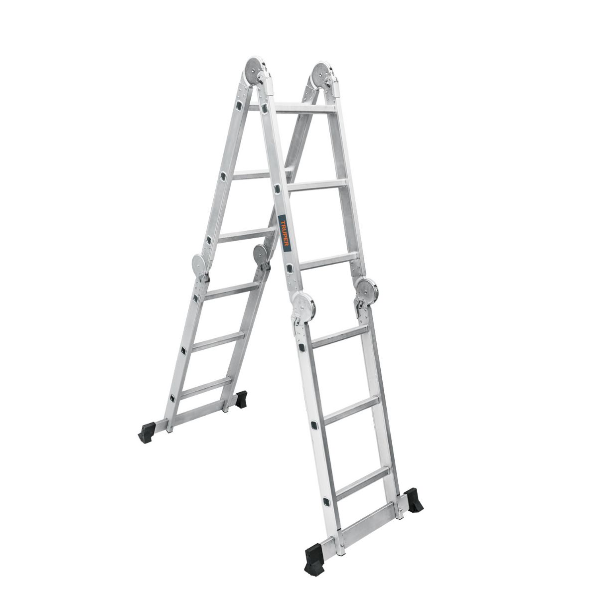 Ideal para utilizarse como escalera recta, tijera o andamio, adaptándose a múltiples necesidades en el lugar de trabajo o en el hogar.