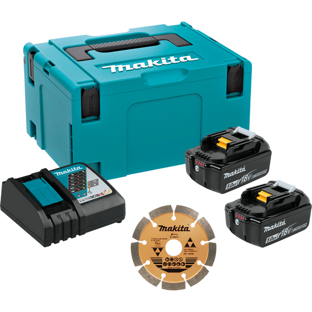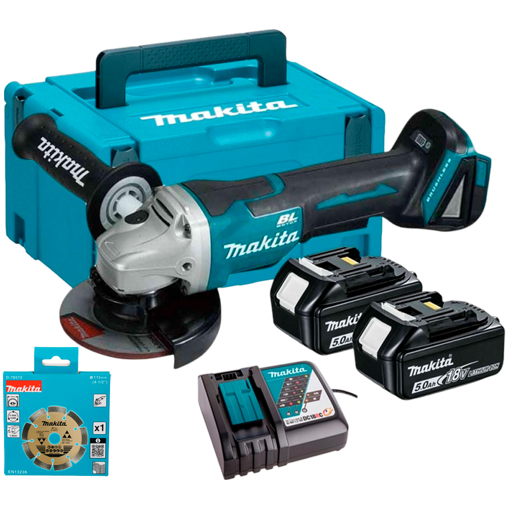 Esmeril 4 1/2″ DGA458RTJ + 2 Bat 5 Ah + Disco Makita