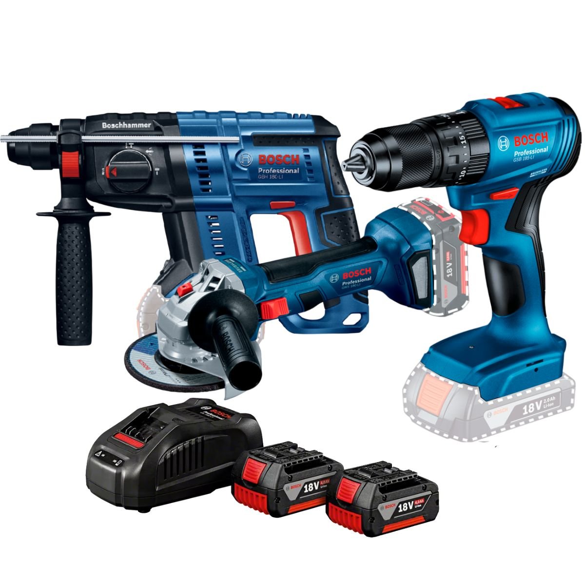Esmeril 5″ GWS 180 + Rotomartillo GBH 180 + Taladro 1/2 GSR 180
