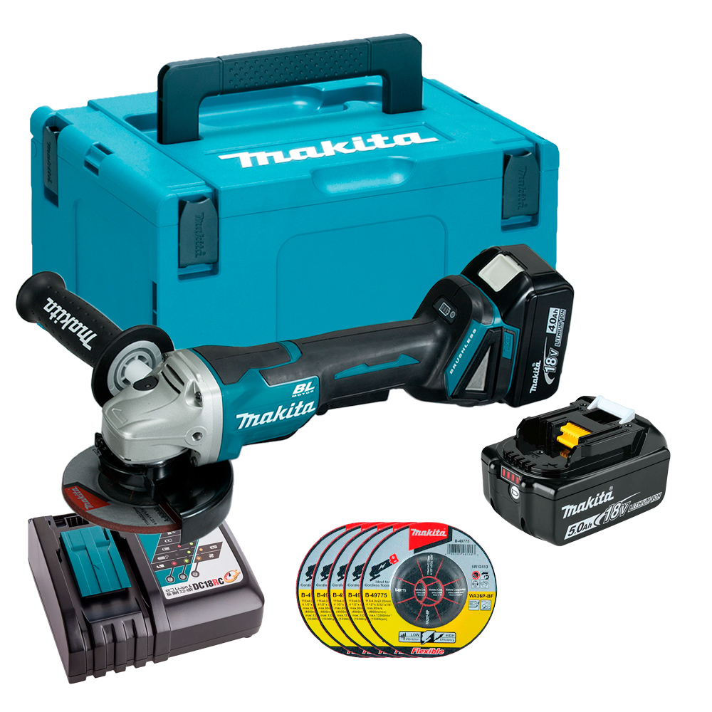 Esmeril Angular Makita DGA455RTJ1 4 1/2″ 18v + 2 x 5.0 Ah