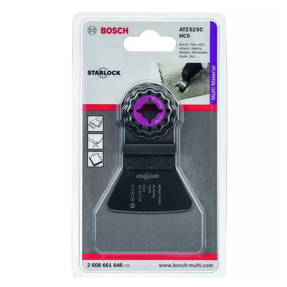 La rascadora Bosch ATZ 52 SC es una hoja de raspado rígida de acero de alto carbono (HCS) de 52 mm de ancho.