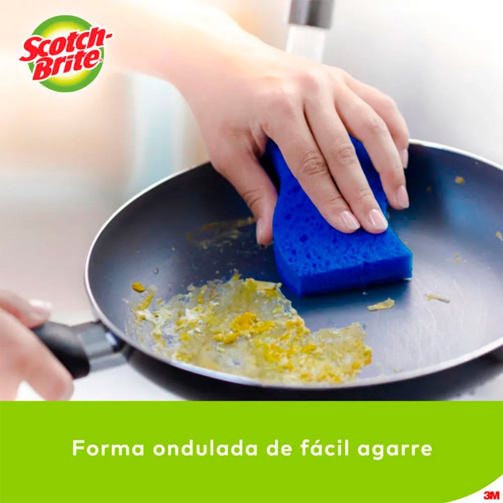 La esponja exfoliante sin rasguños Scotch Brite no implica preocupaciones ni rasguños.