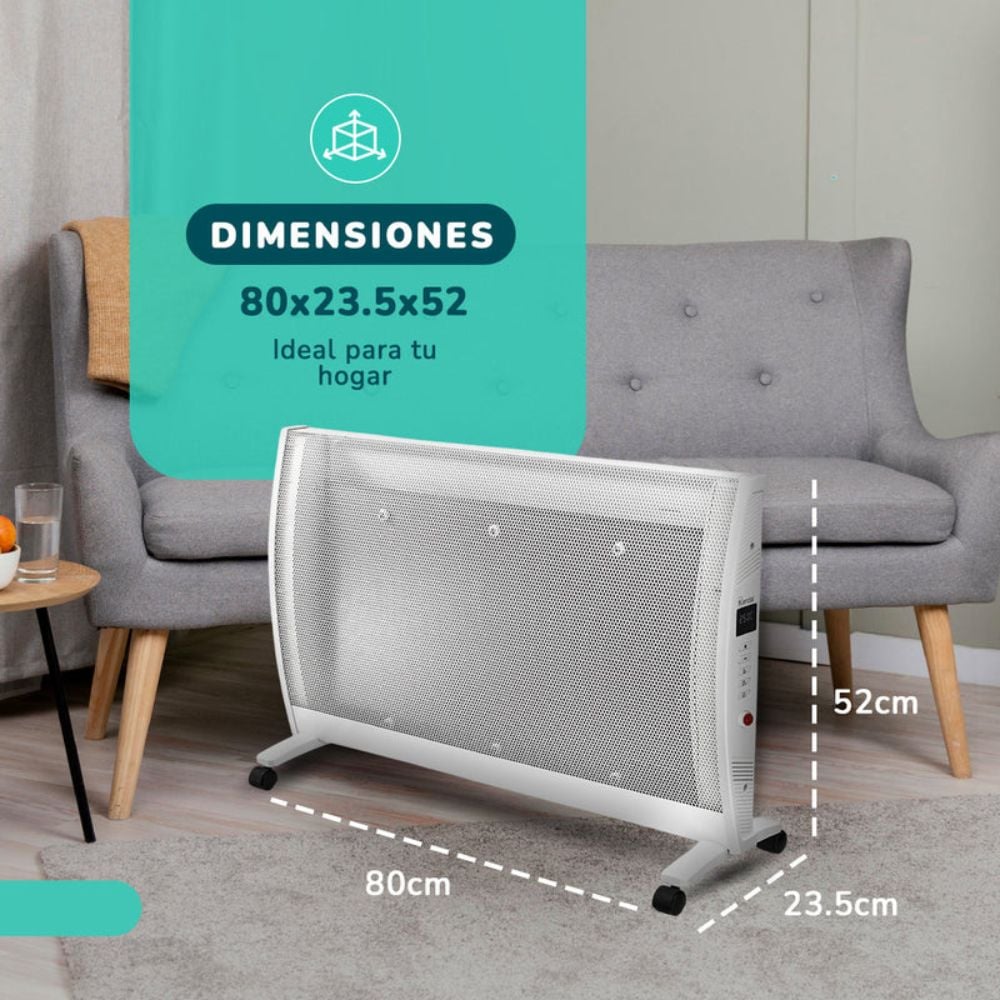La tecnología de mica permite que el calor se distribuya por radiación (calor infrarrojo) y convección suave, lo que contribuye a que el ambiente se caliente de forma más gradual, sin corrientes molestas de aire ni efecto de resequedad pronunciada.