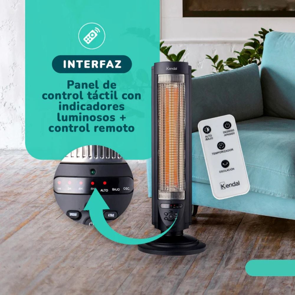 Disfruta del invierno con el confort y la tecnología de la Estufa Eléctrica de Fibra de Carbono Kendal, un equipo moderno que combina eficiencia energética, diseño compacto y conectividad inteligente para brindarte la mejor experiencia de calefacción en casa u oficina.
