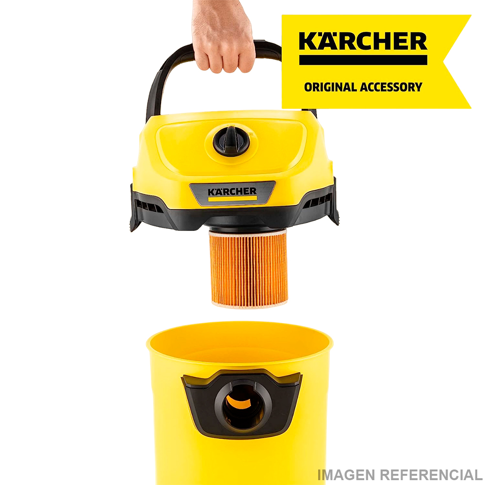 Es un accesorio diseñado específicamente para su uso en equipos de limpieza de la marca Kärcher. Este filtro de cartucho tiene la función de retener partículas sólidas y evitar que entren en el sistema de la máquina durante el proceso de aspiración o limpieza.Está fabricado con materiales de alta calidad y cuenta con un diseño duradero y resistente. Es compatible con una variedad de modelos de aspiradoras y equipos de limpieza de Kärcher.