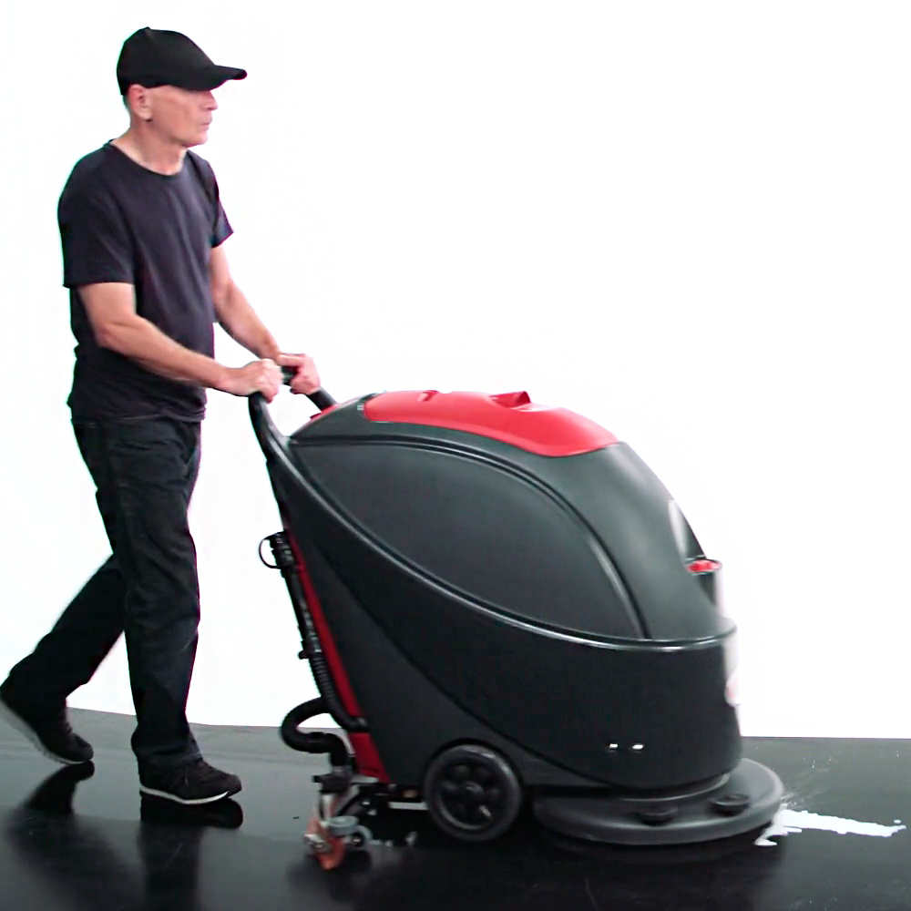 Fregadora industrial diseñada para la limpieza eficiente de pisos en entornos comerciales e industriales.