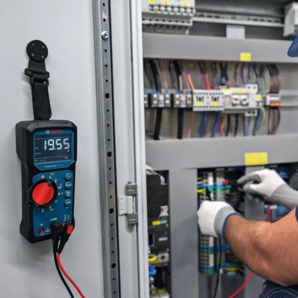 El MH 1 Professional está diseñado para mejorar tu eficiencia al permitirte fijar de forma segura tu herramienta a cualquier superficie magnética. Su revestimiento de goma no conductor garantiza que tus mediciones permanezcan libres de interferencias, lo que proporciona tranquilidad durante los trabajos exigentes. Con una potente fuerza magnética, puedes colgar de forma segura tu instrumento de comprobación eléctrica para trabajar con manos libres, lo que te permite concentrarte en la tarea que tienes entre manos. La correa con cierre de gancho-bucle por contacto proporciona versatilidad y te permite ajustar el soporte a tus necesidades y utilizarlo con varias herramientas de prueba de Bosch.