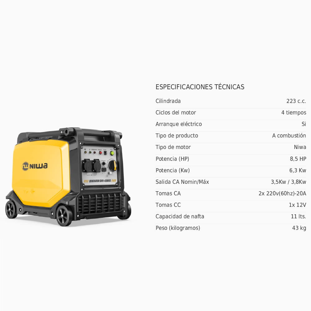Generador Inverter Niwa GNW-4000-iES 3.5kW 8.5HP