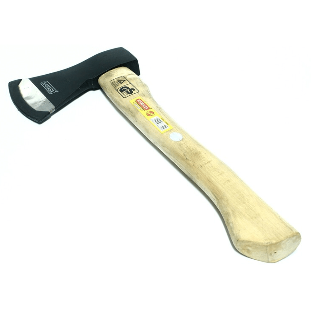Hacha con mango de madera 1000g y protector de filo, fabricada en acero resistente a los golpes y revestimiento esmaltado para protección al óxido.