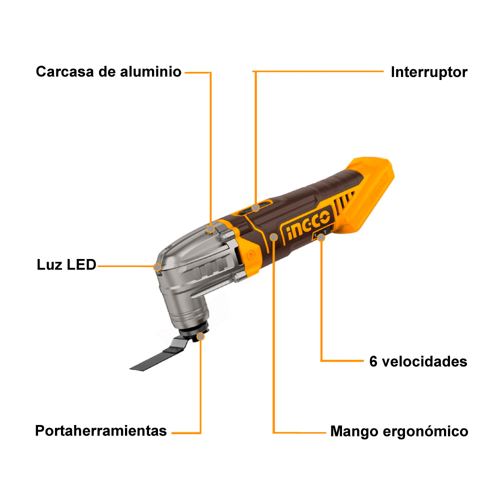 Herramienta Multifunción Ingco Accesorios Bat 2Ah CMLI20228