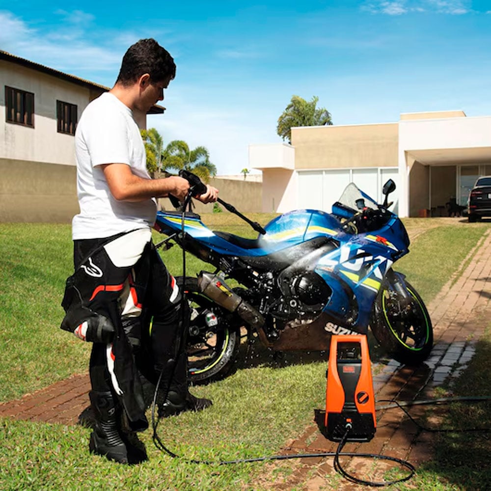 Es un equipo potente y versátil diseñado para limpieza doméstica intensiva, ideal para remover suciedad en vehículos, patios, fachadas y diversas superficies exteriores.