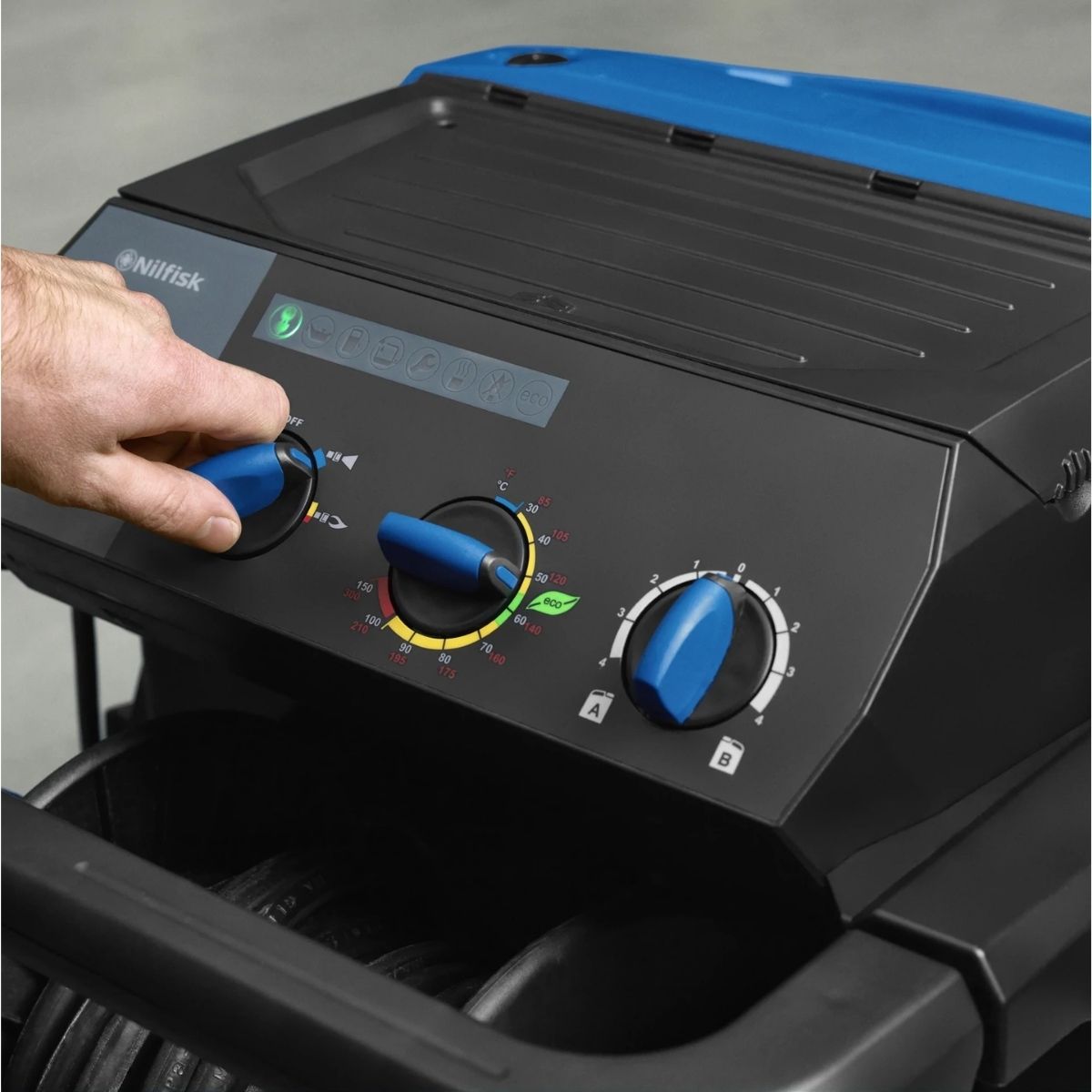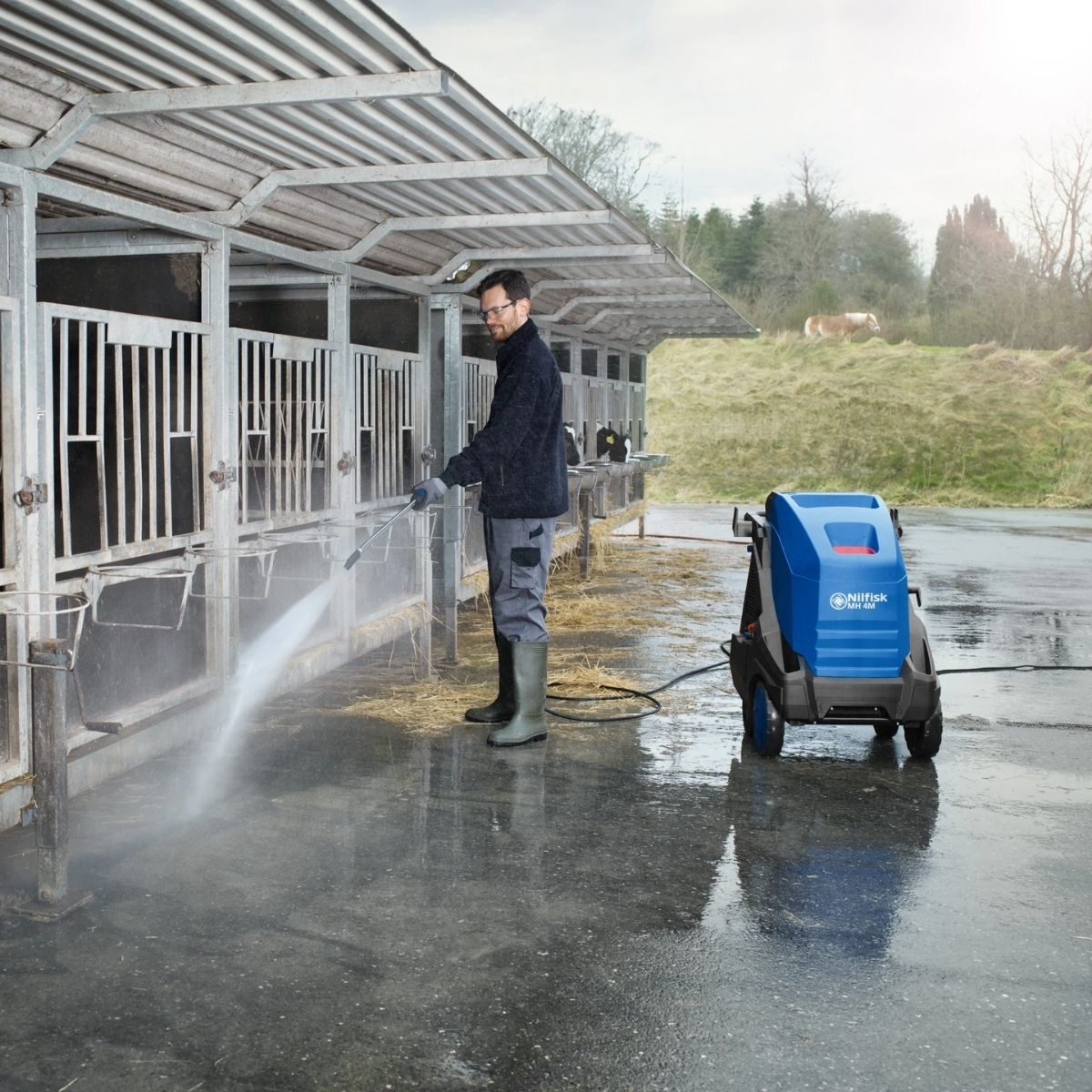 La hidrolavadora industrial Nilfisk MH 4M-200/960 FA es un equipo profesional de agua caliente diseñado para tareas exigentes de limpieza en industria, transporte, agricultura y talleres. Incorpora una bomba industrial NA5 con tres pistones cerámicos y un motor de alta eficiencia de 4 polos, ofreciendo un alto rendimiento con gran durabilidad. Su sistema FA de descarga automática de presión mejora el confort del operario y prolonga la vida útil del equipo. Gracias a su caldera EcoBoiler con EcoMode, permite una limpieza más eficiente reduciendo consumo y tiempo de trabajo.