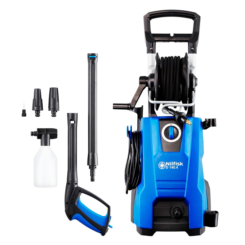 La D 140.4 es una hidrolavadora doméstica, que ofrece un alto nivel de rendimiento con un robusto motor de 2,4 kW.