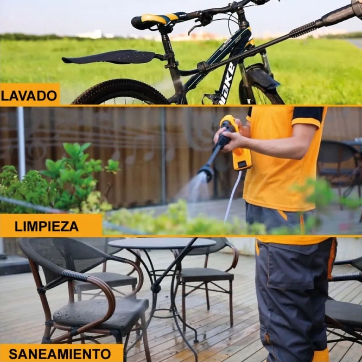 Cuenta con sistema de parada automática que optimiza el consumo de batería y prolonga la vida útil del equipo. Incluye batería 2.0Ah, cargador y accesorios completos como manguera de 6 metros, productor de espuma y conector de autoaspiración, ideal para trabajar desde baldes o depósitos.