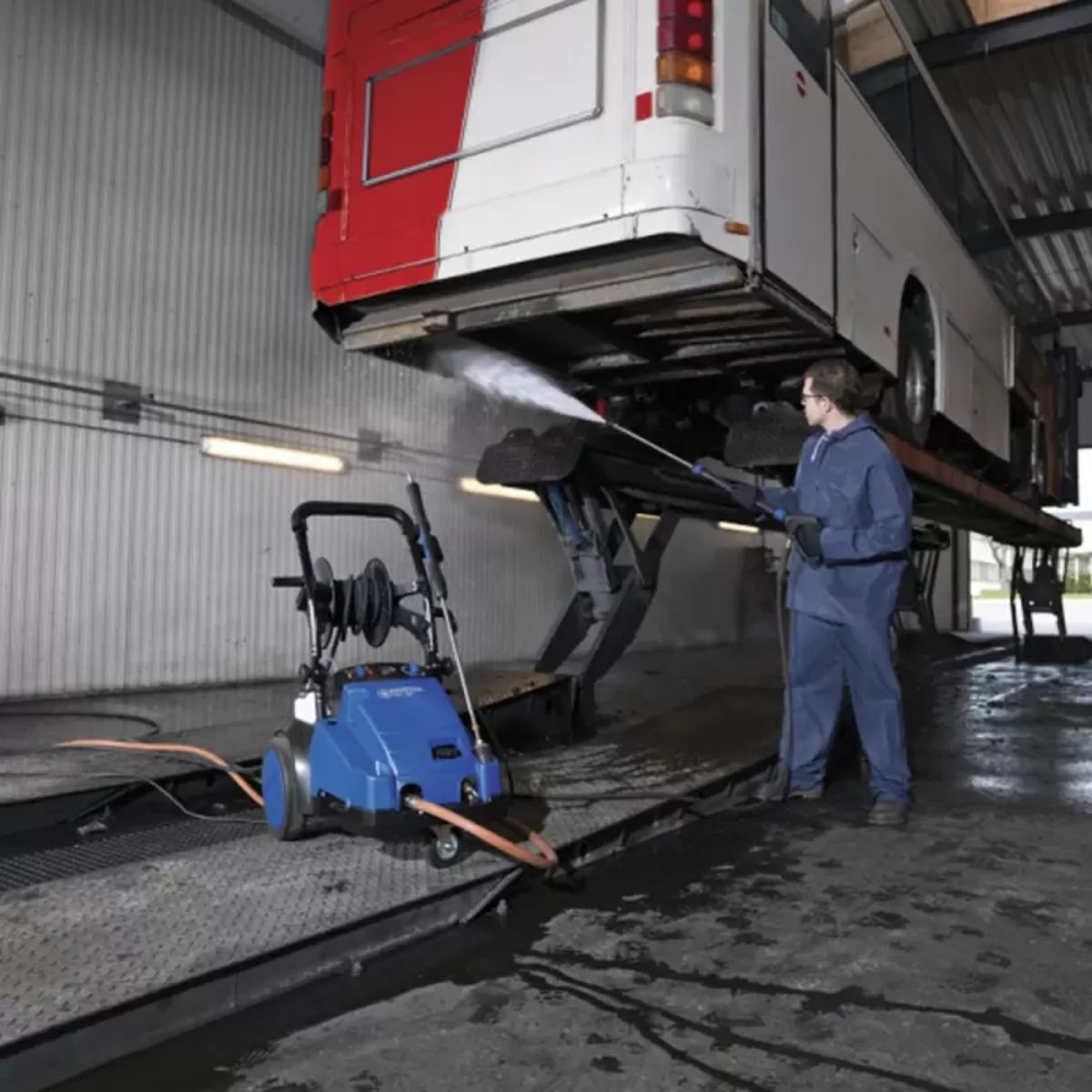La hidrolavadora industrial Nilfisk MC 6P-250/1100 FA está diseñada para aplicaciones severas y uso intensivo de hasta 5 horas diarias en sectores como industria, agricultura, transporte y alimentación. Equipada con una robusta bomba NA6 de 4 pistones totalmente cerámicos y sistema de control activado por flujo (FA), ofrece un desempeño superior, alta durabilidad y bajos costos de mantenimiento. Su capacidad de trabajar con agua de entrada hasta 80 °C permite reducir significativamente los tiempos de limpieza, mientras que su diseño ergonómico y chasis de acero garantizan estabilidad y facilidad de transporte.