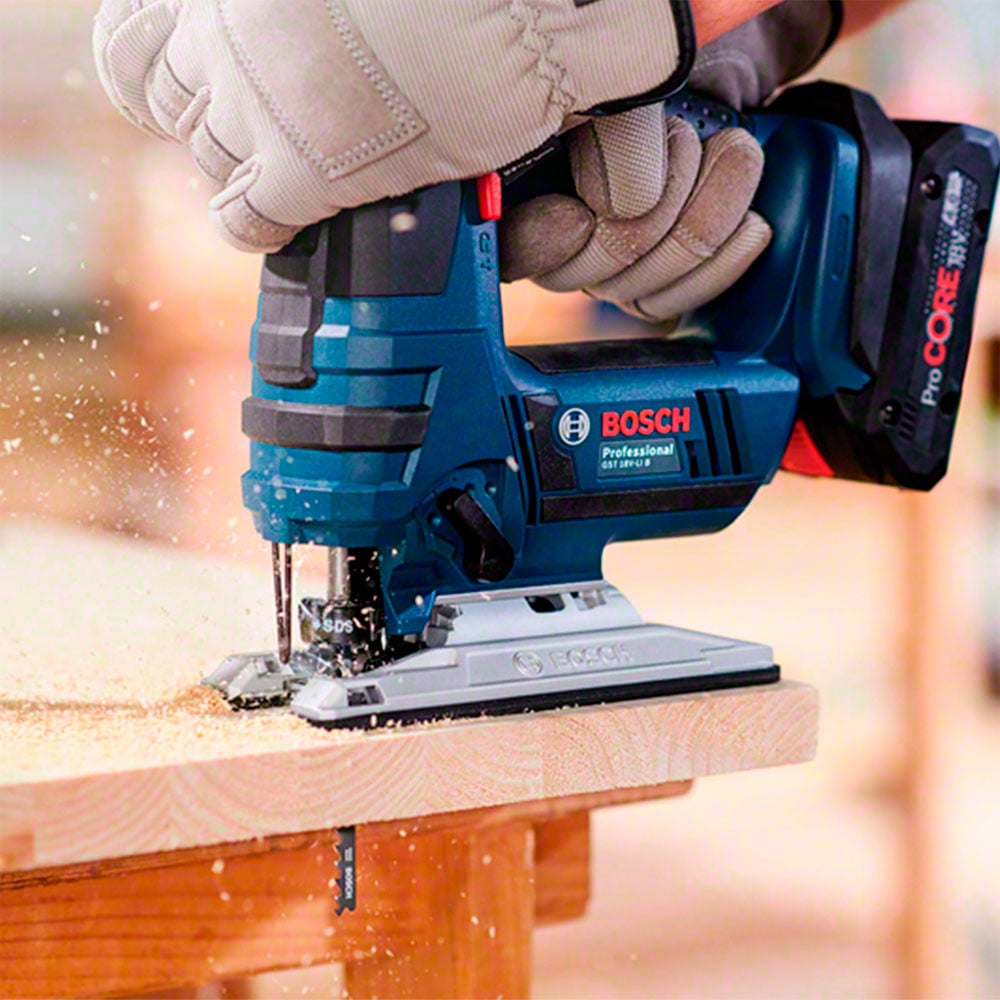 Además, el espaciado entre dientes amplio y progresivo (4-5,2 mm) corta distintos materiales para trabajos en madera con un grosor de 5 a 50 mm.
